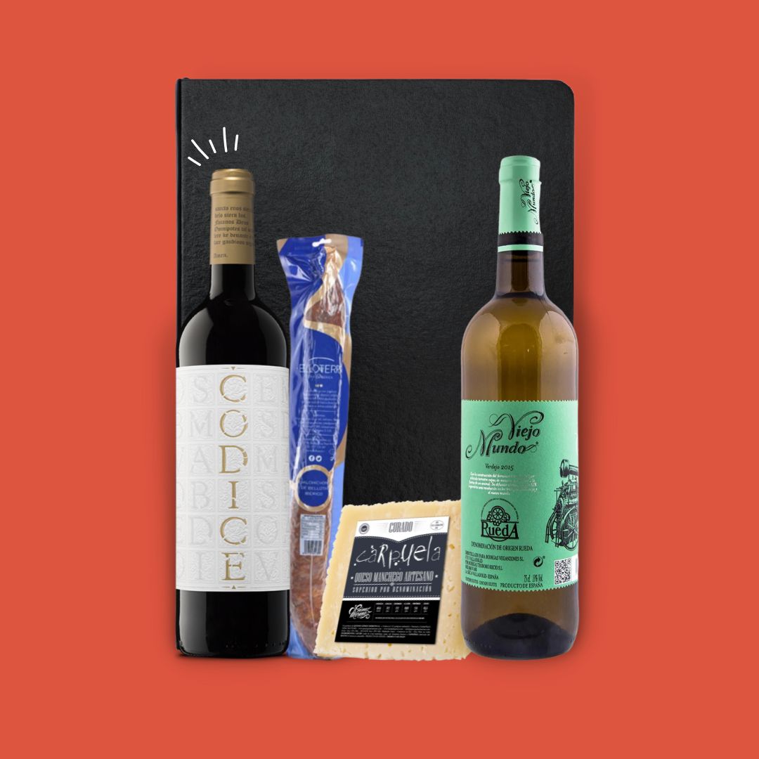 El Pack Hoy Mojo te lo ponemos a huevo... Tendrás todo listo por nuestra parte para esa noche que tanto esperas, ya el cierre queda en tus manos. Este pack te incluye un vino blanco Viejo Mundo Verdejo, un vino tinto Códice, un chorizo de bellota de medio kilo y una cuña de queso curado Carpuela, para que hoy mojes sí o sí ; )